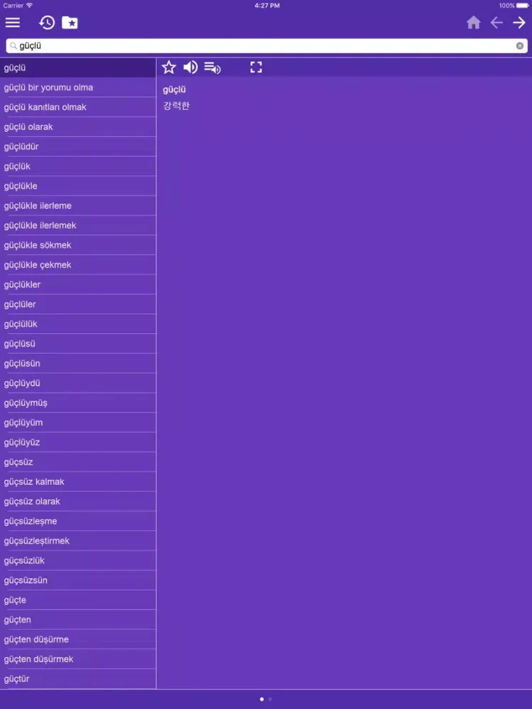 This is Korean - Turkish and Turkish - Korean dictionary; 한국어 - 터키어 및 터키어 - 한국어 사전 / Korece - Türkçe ve Türkçe - Korece Sözlük. The Application works OFFLINE and does not need the internet connection.
