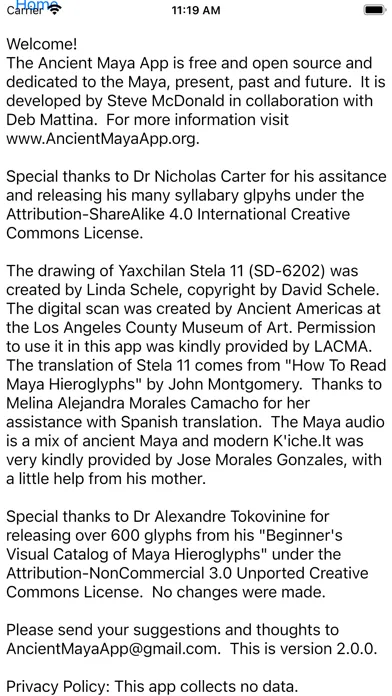 With the Ancient Maya App you can create glyph blocks, share glyph blocks, decode glyph blocks, convert dates between the Long Count calendar and the Gregorian calendar and easily navigate the Mayan syllabary. Explore the famous Stela 11 from Yaxchilan and even listen to a Mayan read it. The app includes nearly 800 glyphs, their definitions and over 600 dictionary entries.