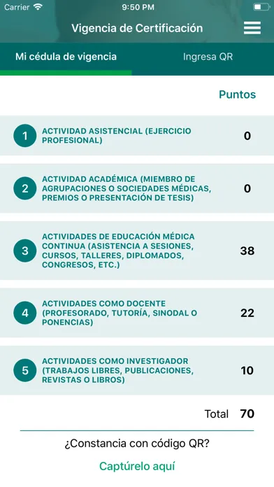 - Consultar la cantidad de puntos que lleva acumulados en su Cédula de Vigencia de Certificación