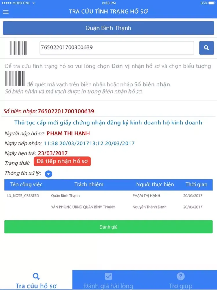 Hệ thống phục vụ người dân và tổ chức trong việc tra cứu tình trạng hồ sơ của tất cả 20 Sở Ban ngành và 24 quận huyện. Và đánh giá hài lòng về sự phục vụ của cơ quan hành chính nhà nước trên địa bàn Tp.HCM