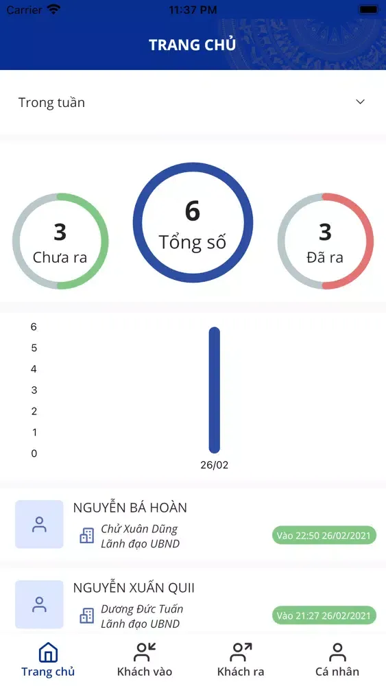 Phần mềm quản lý ra vào giúp quản lý người ra vào cơ quan. Thống kê và danh sách những cá nhân ra vào cơ quan theo từng ngày. Hỗ trợ tự động nhận diện giấy tờ tuỳ thân của khách