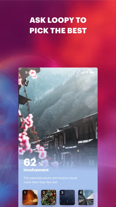 Loopy is your new friend for choosing the best photos for your social media. If you cannot decide which photo can get more likes then ask Loopy! Also Loopy can find the most suitable tags and similar photos for you. You can select up to 5 photos and compare.