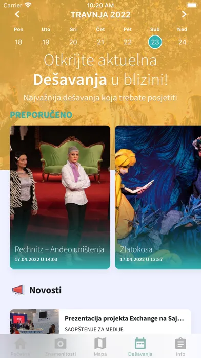Aplikacije može pretraživati destinacije, znamenitosti, novosti i događaje te pronaći tačno mjesto zbivanja, sve uz mogućnost lociranja i korištenja vlastitog mobitela za navigaciju.