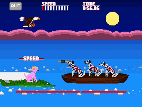 In this completely historically inaccurate tale, George Washington has embarked on his famous crossing of the Delaware only to realize he has forgotten his precious wig. Join a cast of canines as they bravely race to return the missing hairpiece. Old-school arcade action meets adorable dogs (except the ugly ones) in this fast-paced adventure.