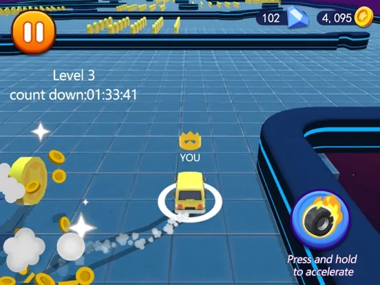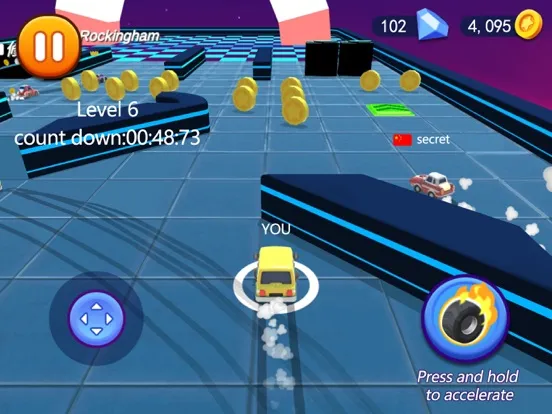 Avoid obstacles on the map, find shortcuts in the maze like track, and get gold coins.