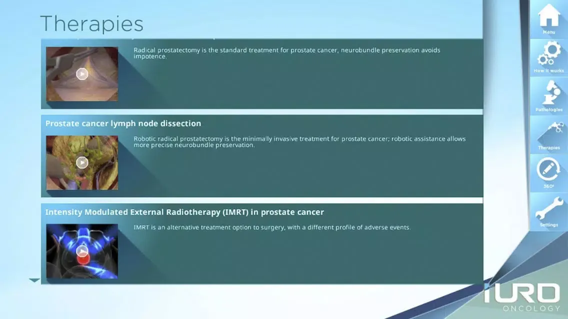 iURO Oncology can also be used by patients directly, to familiarize themselves with the different aspects of their oncological condition and the treatment options available.