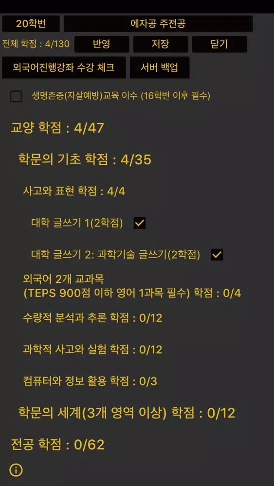 -Check at a look what subjects you have to take in, how many more credits you have to get, or whether you missed something for your graduation! Not only for the students who main major in ERE, the student who double major/minor in others, or main major in others and double major/minor in ERE also can use this application!