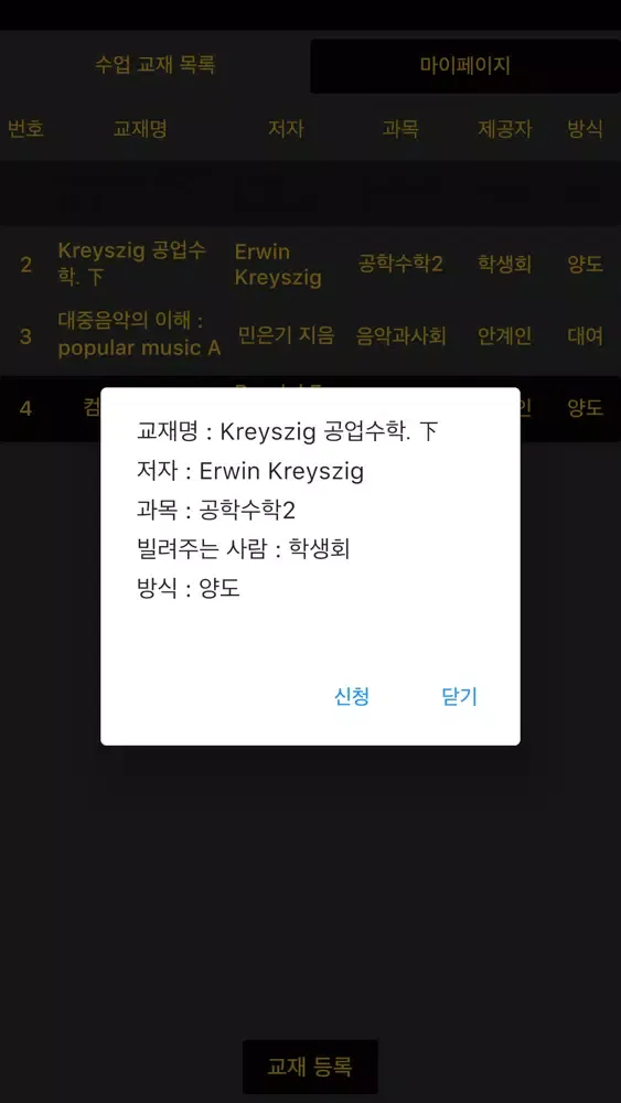 -수업 교재 대여 서비스는 회원가입 및 로그인 후에만 이용 가능합니다. 서비스 이용을 더 이상 원치 않는 경우에 회원탈퇴를 하시면 모든 개인정보는 자동으로 삭제됩니다.