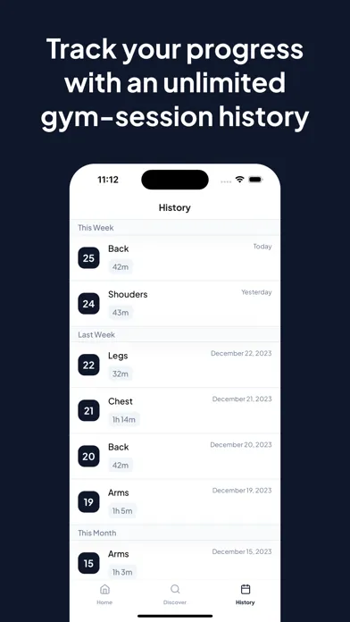 But the fun doesn't stop when you leave the gym. With our app, you can view your previous sessions and track your progress over time. Watch as your strength and muscle mass increase with each workout. Don't waste any more time with a scattered workout routine - take control of your fitness journey with our comprehensive app. Try it out today and see the difference for yourself!