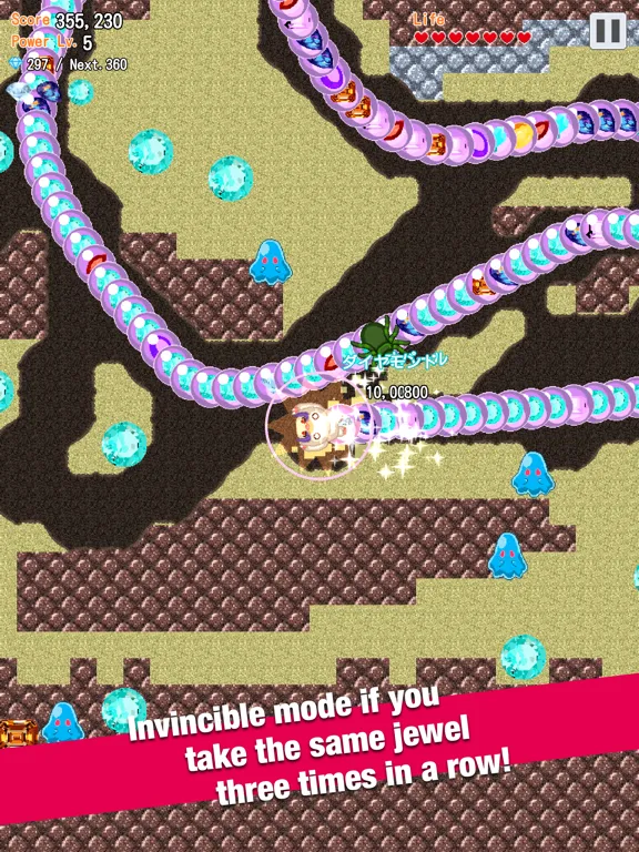 If you take 3 types of the same jewel in a row, you will be invincible for a few seconds.
