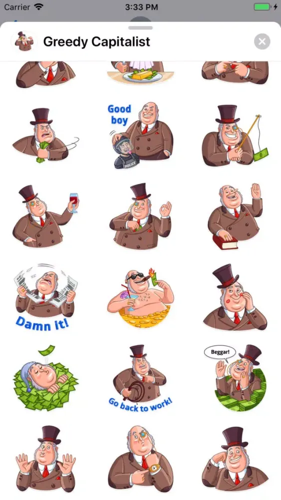 Greedy Capitalist is a funny and cute sticker pack that will bring happiness and good mood to you and your friends.