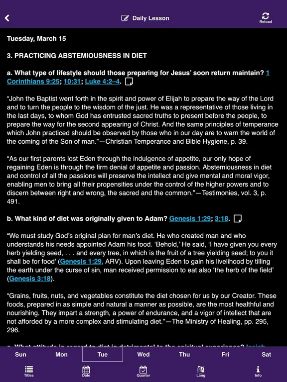 The purpose of this application is simply to put the Sabbath Bible Lessons in the hands of as many people as possible, giving them the opportunity to study the Bible whenever and wherever.