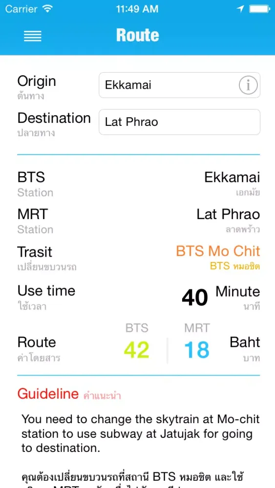 Do you ever have a problem when you travel using the BTS skytrain or MRT? For example, you don't know which station is a right destination. How much money do you have to spend for a ticket? All these problems will be gone if you use BTS & MRT Information Service Application. The application provides all information about BTS and MRT. Moreover, It helps you to plan your trip, calculate exact fares, and display a route time. It also gives you more nearby places information around every train station. This is 2-in-1 application that includes all details of both BTS and MRT; and it is easy to use.
