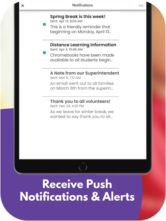 App users may opt to receive push notifications with important alerts from the district.