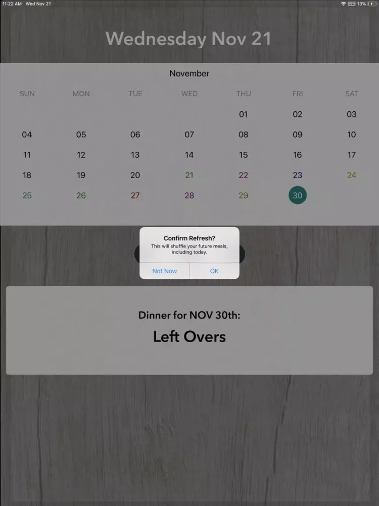 Dinner Time allows users to add in their favorite meals and have them randomized over upcoming days. Created by a man who was exhausted with having the same conversation with his wife as to "What's for dinner tonight?", Dinner Time allows him to schedule all his meals without needing to make any decisions.