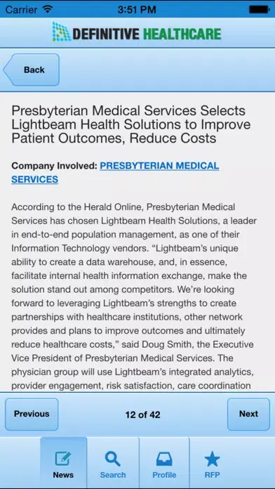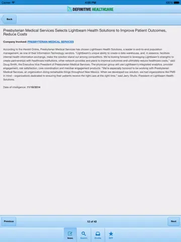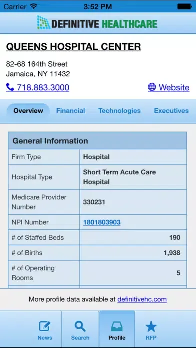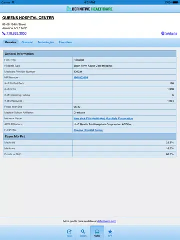 Provides iPhone access to Definitive Healthcare's vast data on Hospitals, Health Systems and other Healthcare Providers such as Physician Groups, Surgery Centers and Accountable Care Organizations.