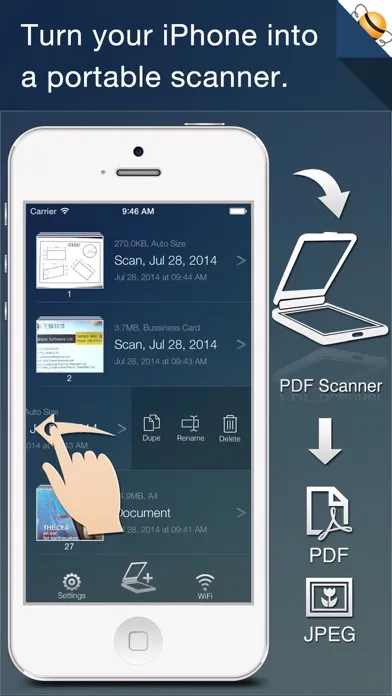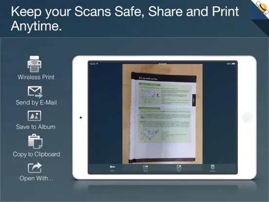PDF Scanner boasts a professional yet easy-to-use interface, simple workflow with an extremely neat, clear interface and interactive gestures. It can easily print & fax with HP, Canon, Kodak and other printers.