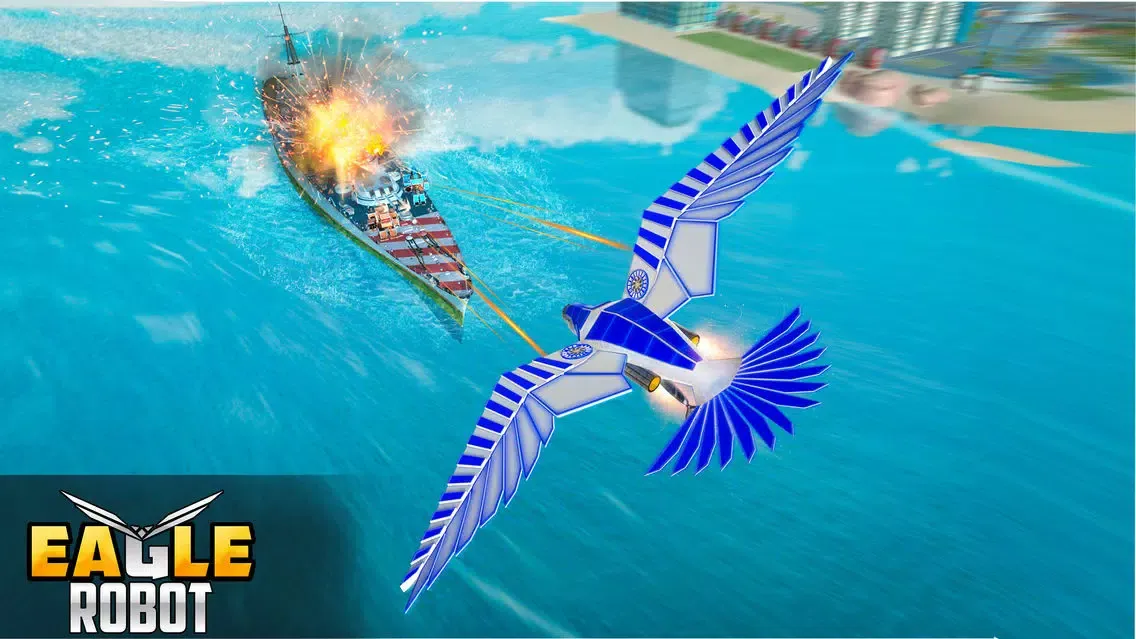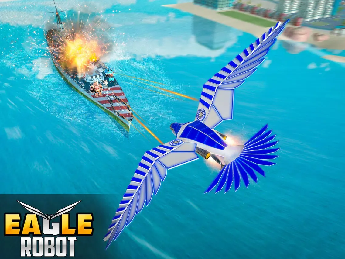 Get into a new era of real robot battle games into the animal robot or flying bird like wild eagle robot, super dragon robot and other evil robots. Play the game and pick up your favorite robot dress to go in the battlefield. Getting you into fighting arena you will turn x robot simulator into mech battle. You as a warrior robot will fight against enemies by shooting them and destroying their jets with a flying bird from robot. Robot flying games are changing the wars into peaceful with a robot strike in robot shooting games. Your survival city attacked by enemies. Police cop eagle will gets alert for city rescue mission. A real US police hero knows how to combat against the flying dragons.