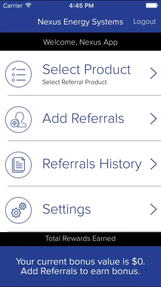 Nexus Energy Systems is a free App available for anyone to download and is used for those that want to earn rewards by sending referrals to Nexus Energy Systems. It is as simple as downloading the App, selecting the Sales Rep and registering. Once registered, you can begin sending referrals right away. It is the one app that will allow the user to easily submit referrals to Nexus Energy Systems and track the progress of your referral and rewards right on your mobile device. Referring has never been so easy.