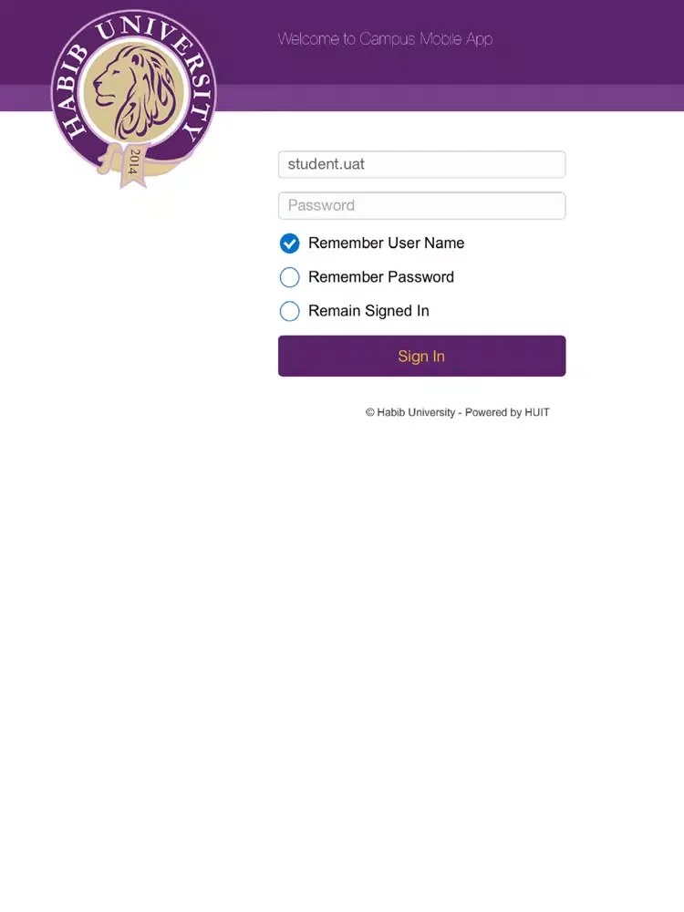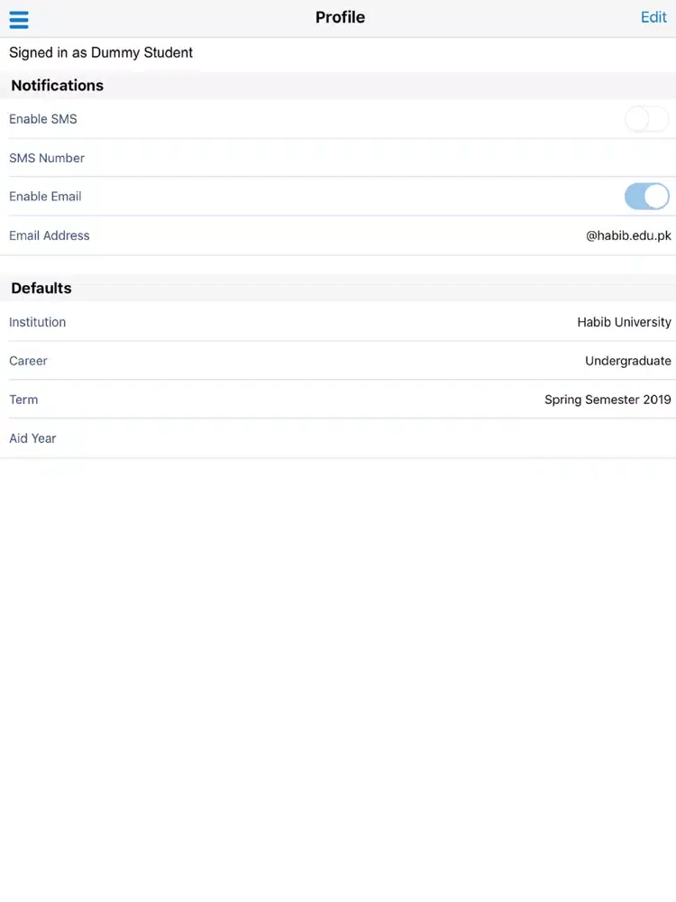 Habib University campus app is a student self-service application designed for smartphone devices. It enables students to have constant access to high value self-service transactions and keeps them connected with the university on the go.