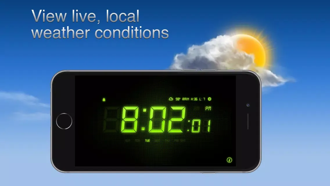Alarm Clock - Alarm & Weather turns your iPhone or iPod touch into a beautiful digital clock and alarm clock! It even displays live, local weather conditions and temperature that makes you know about the weather immediately when you wake up.