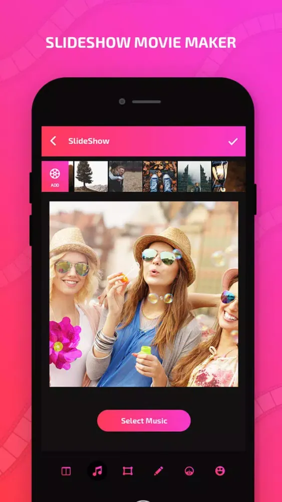 In Video Slideshow Maker application your video editor with best tools: Music, Frames, Effects, ...