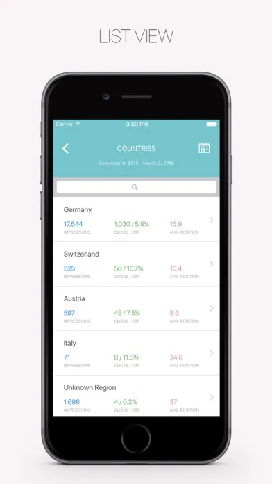 ・Favorites: Mark search queries, pages, countries or devices as favorite (swipe right in list view)