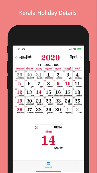 Malayalam Calendar is a free, non-photographic calendar for Malayalies around the globe.
