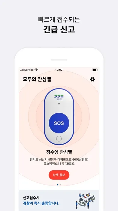 안심벨을 누르면 신고자의 위치로 경찰이 출동합니다.
