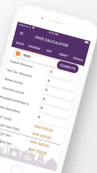 Ghana PAYE Calculator calculates your Income Tax based on your Salary and SSNIT Contribution (5.5%) and gives you an accurate representation of what you are to pay. This part is useful for everybody. The User Interface is neatly designed and easy to use.