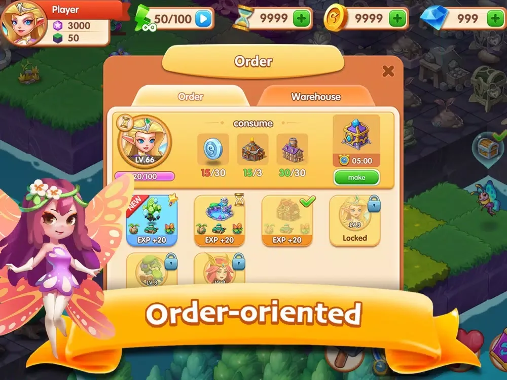 By merging three identical pieces to create a new item, you will be able to have more materials to make different orders. Don’t forget our goal is to unlock all the lands and rescue those cute elves! Making order will help you accelerate the process.