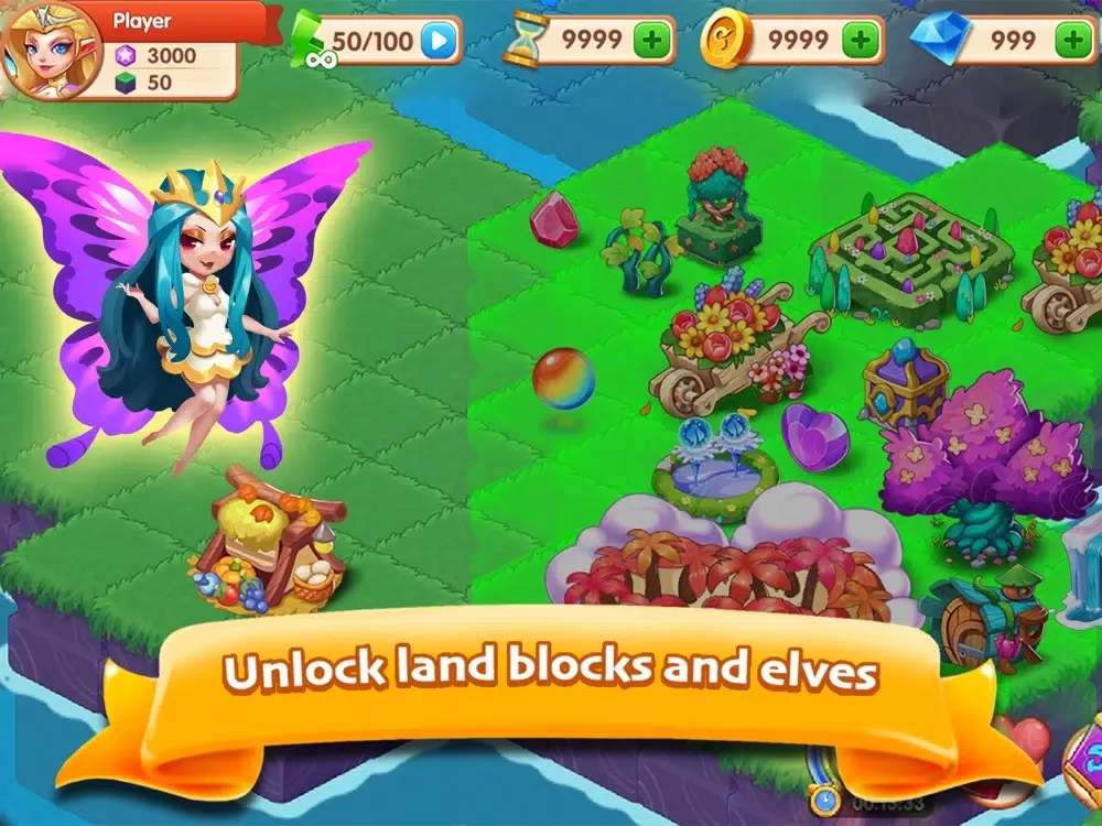 Merge Forest is a perfect game for you if you are trying to find something that can help you escape from a tiring day for a while. When to start and how to play is all up to you. Customizing your own land and helping the elves evolve will surely bring you a great sense of achievement. Every order is reachable and every time you finish an order, you get one step closer to bring the forest back to life.