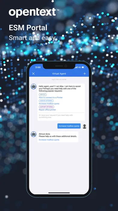 IMPORTANT: This software requires connectivity to the OpenText Service Management Automation Suite. You may activate the mobile app by scanning a QR code from your company’s Service Management Automation Service Portal web site. You may also contact your IT administrator for an activation URL.