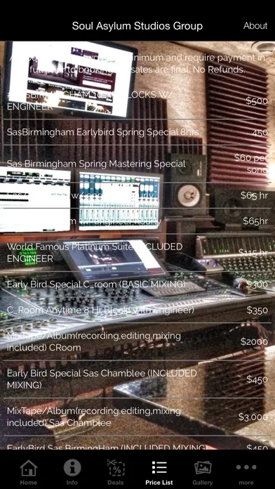 Soul Asylum Studios Atlanta aka "The Castle" is an amazing exclusive multi-use facility The Diamond Suite is a photography and videography studio.Its Platinum Suite recording studio with private lounge and bathroom is all ready world famous with a client list of who's who. Sas Atl Dance/Rehearsal is also the dance studio of choice from some of Atlanta and beyond, signed recording artist and choreographers. The Castle also has its own exercise gym (WITH SUANA AND LARGE STONE SHOWER INCLUDED) with free weights and heavy bag. Large custom conference room with its own private bathroom and a large 2 bedroom 2 bath private penthouse with full kitchen,laundry room,fireplace and 5 person marble Jacuzzi tube in master with walk in closets.The Sas Atl Sky Lounge is a all private 1500 square foot event rental space with bar,dj booth,dance floor and vip booths for exclusive parties and events. Soul asylum studios Atlanta, private,professional and A+ customer service!