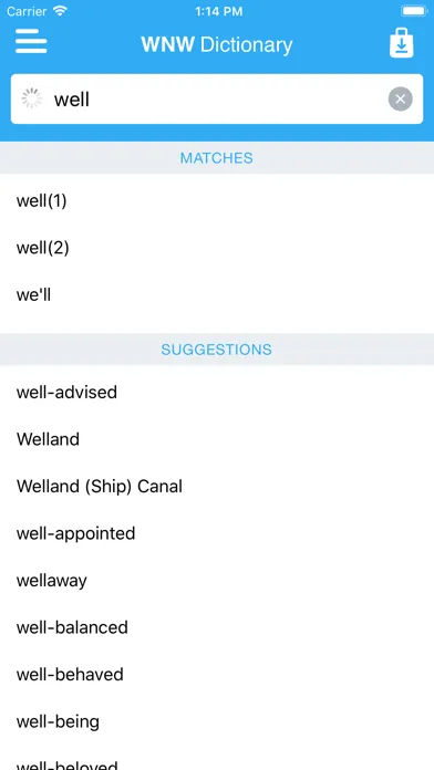 • Search autocomplete helps you find words quickly by displaying predictions as you type.