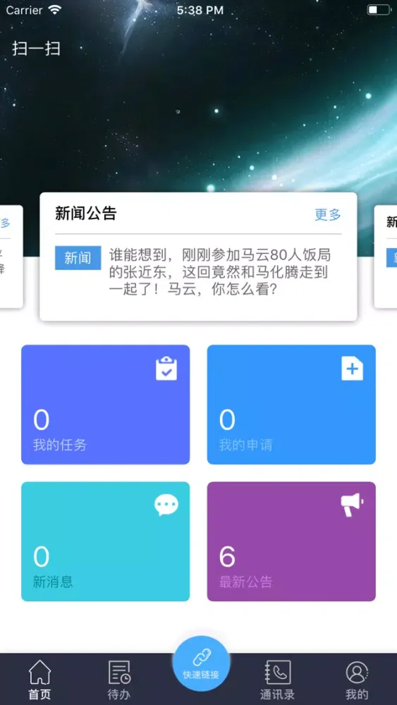 首页展示最新、最重要的信息,任务、通知等,图文并茂、一览无余