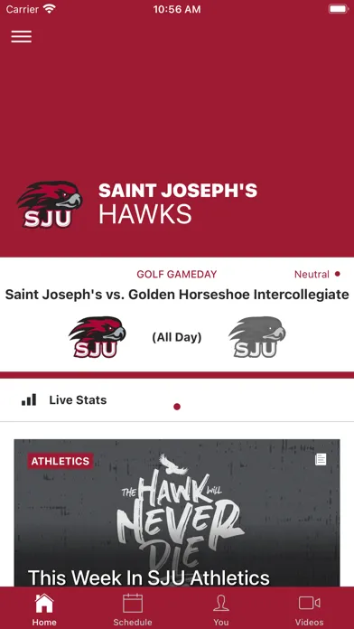 The official Saint Joseph's University athletics app is a must-have for fans headed to campus or following the Hawks from afar. With interactive social media, and all the scores and stats surrounding the game, the Saint Joseph's Hawks app covers it all!