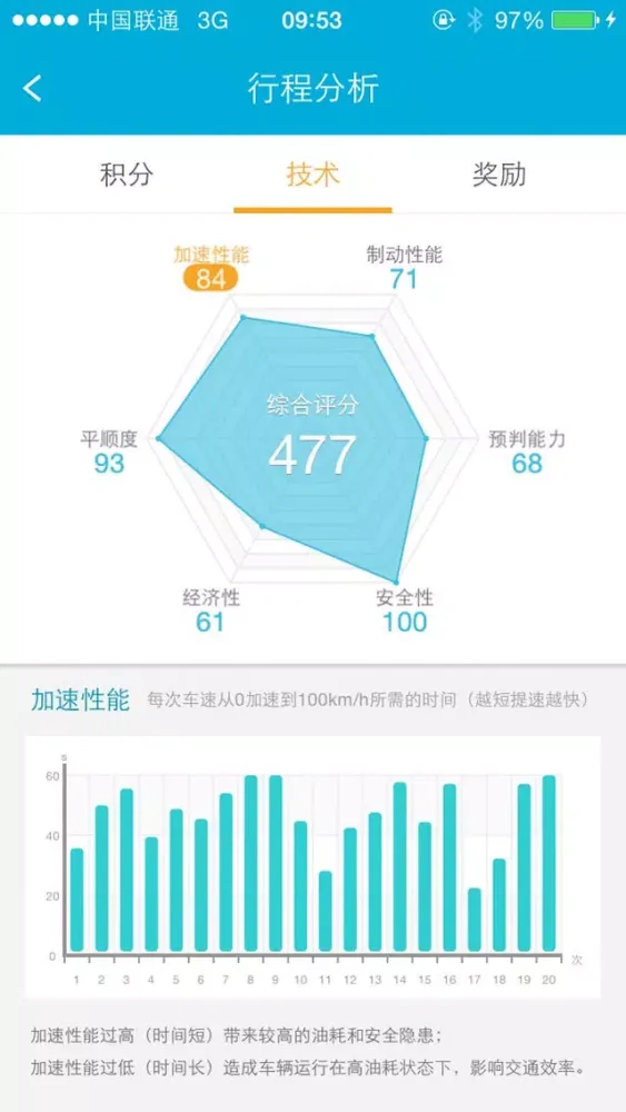 评估您的加速制动控制能力和特点,评估您的预判感知能力,了解您开车平稳舒适情况;