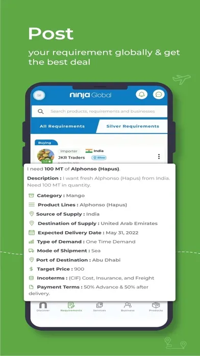 With a large network of importers and exporters registered on our app, we provide the perfect space for you to find the right opportunities for your business. Whether you are looking to sell products, or buy them- Ninja Global is the platform for you!