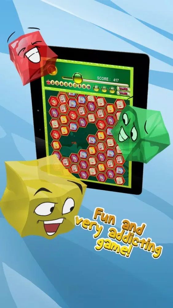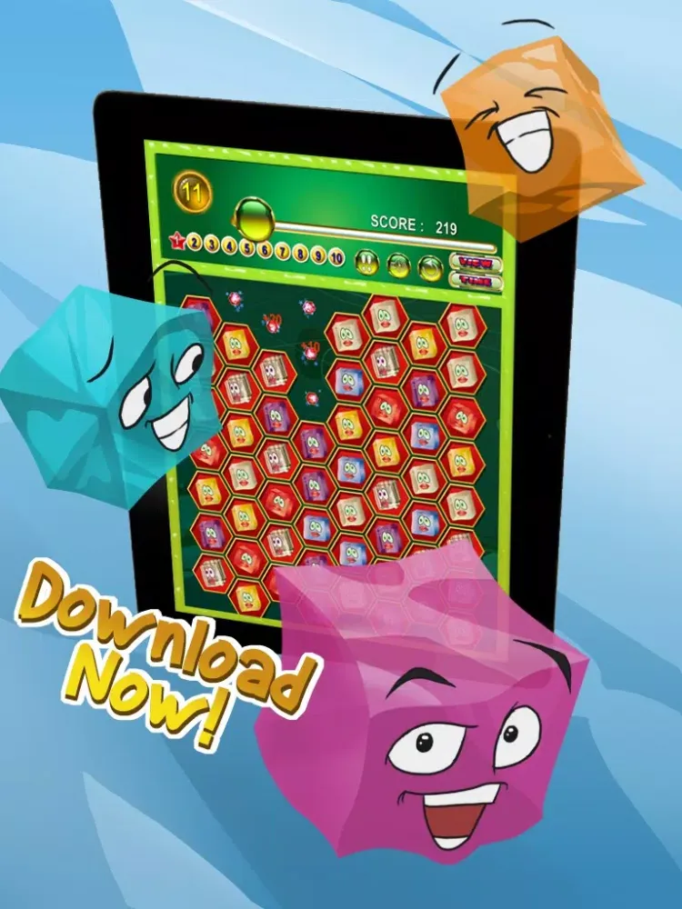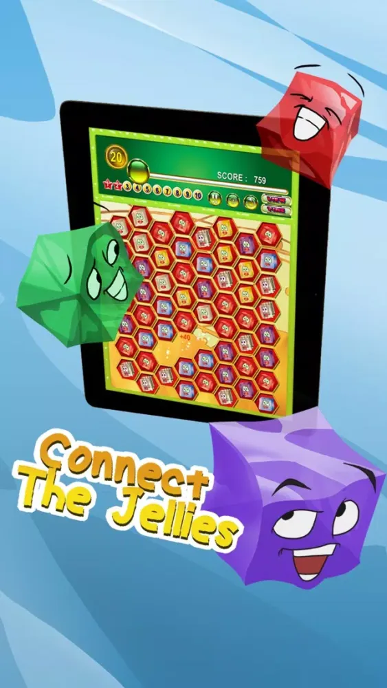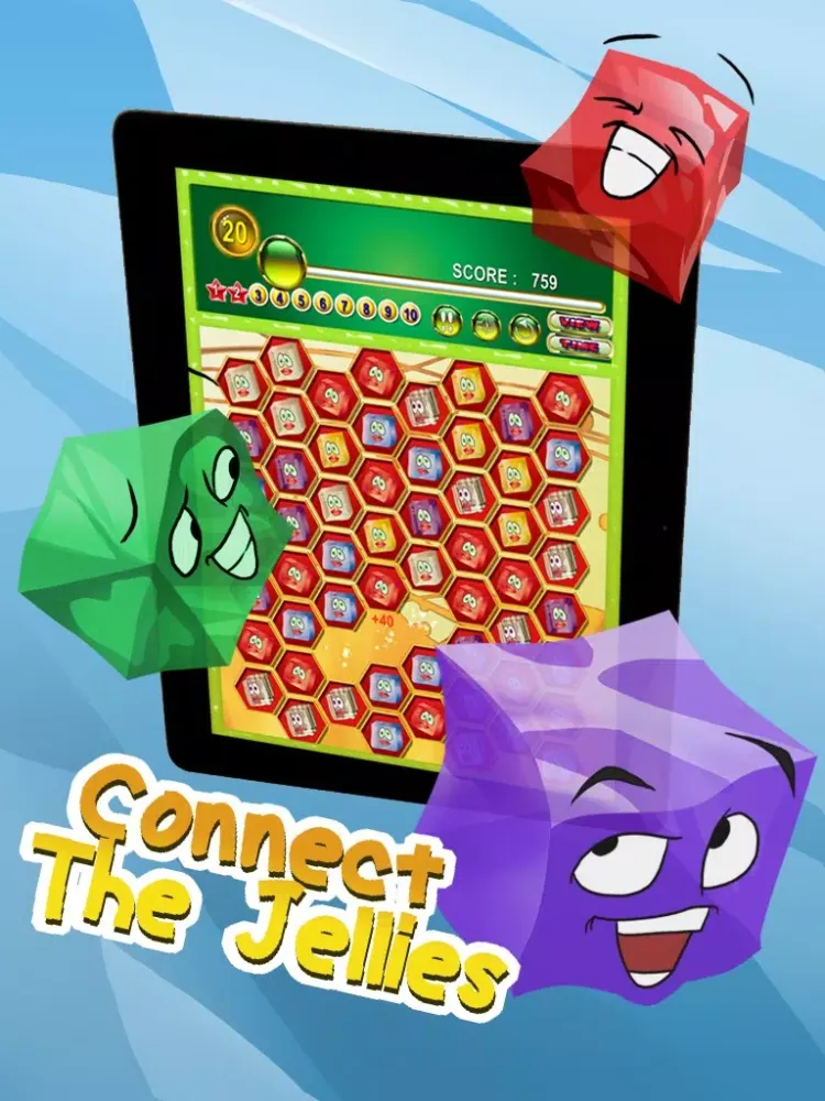 All you have to do is trade two neighboring jelly cubes to make 3 or more of the same type. You can make them connected either vertically or horizontally. With a tap of your finger, you'll have the colorful, vivid jelly cubes moving in no time. But it's not as easy as you think! Both your mind and dexterity will be put to the test!