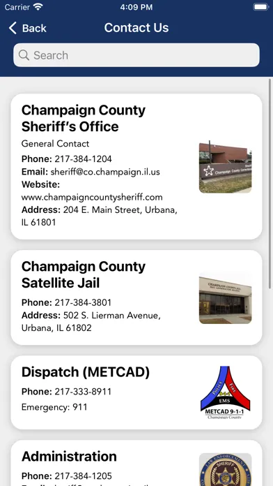 The Champaign County Sheriff’s Office mobile application is an interactive app developed to help improve communication with Champaign County residents, workers and visitors. The Champaign County Sheriff App allows easy, two-way sharing of information at your fingertips, including submitting tips, finding inmate information, facilitating community collaboration, and receiving critical information about evolving situations, among other interactive features.