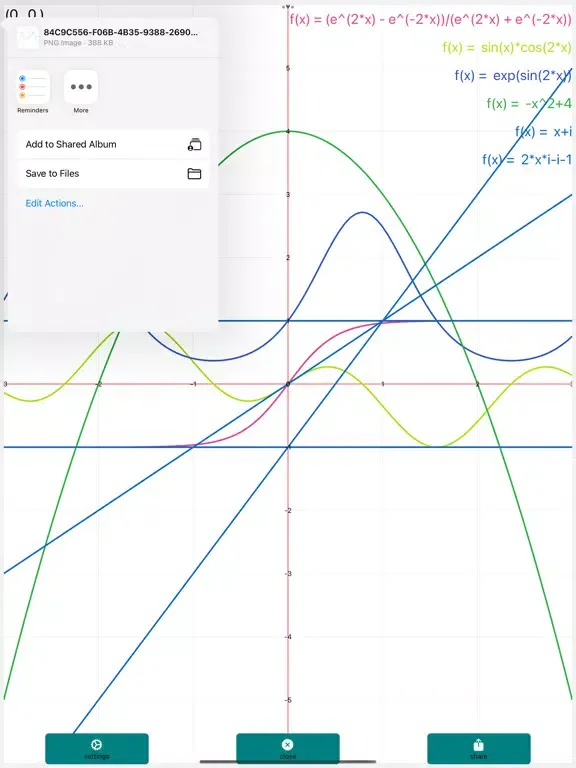 The graph contains the plot for each function, color-coded legends for each function and always-visible x-y axis with ticks.