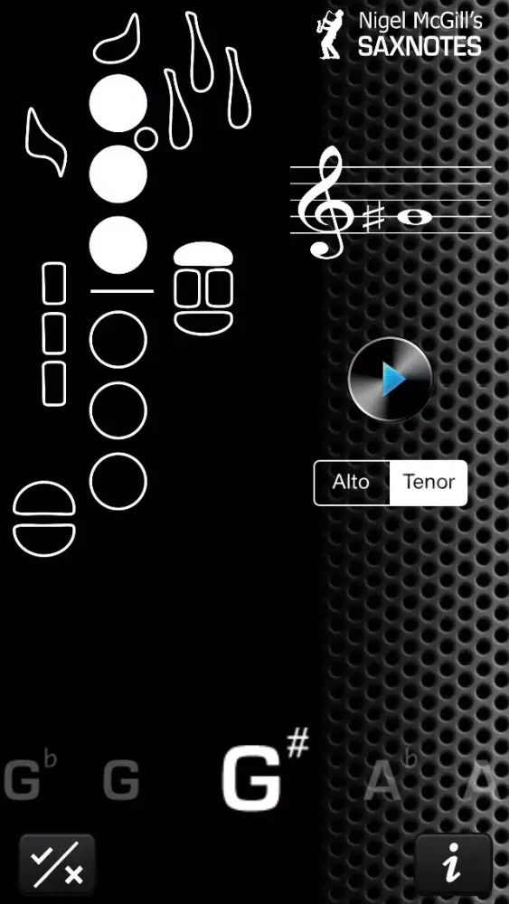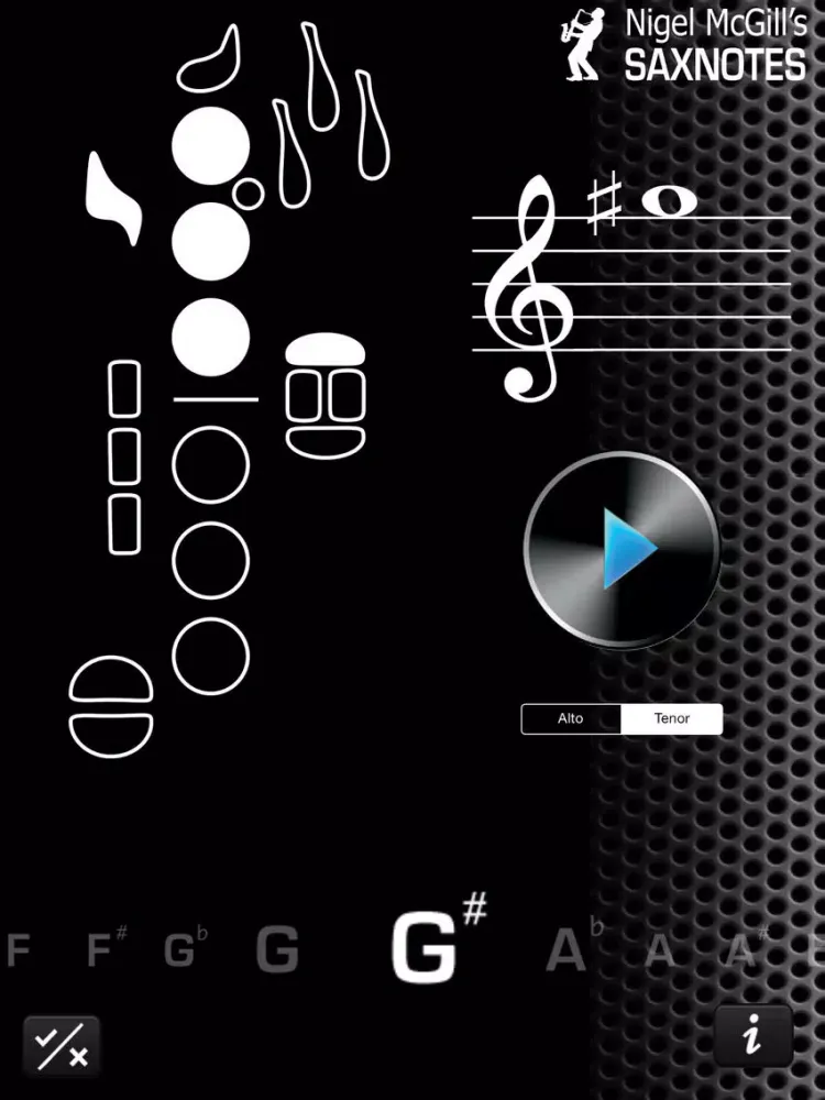 SaxNotes is a fingering chart app for the Saxophone. This app provides all the features of a normal fingering chart, but also plays the note in alto or tenor and displays the finger position with the music notation.
