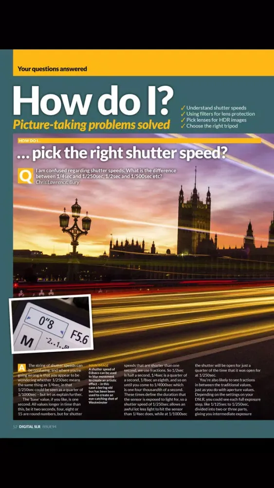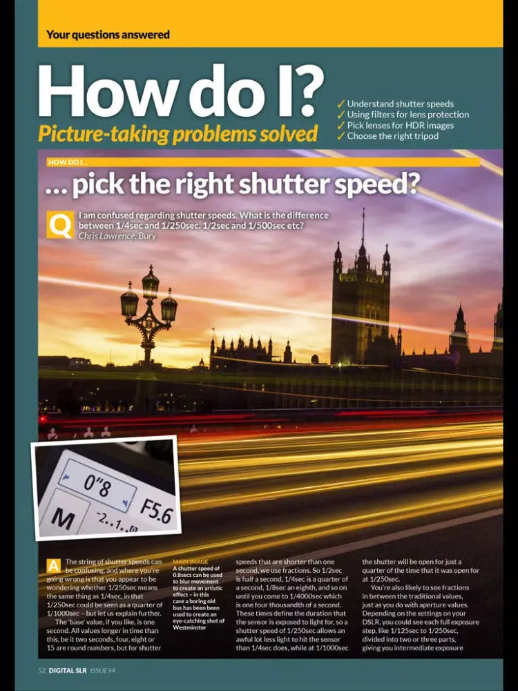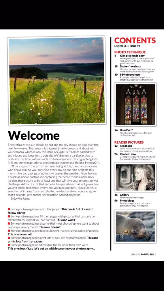 Beginners to Digital SLR photography now have a magazine written specifically for them! Every issue is packed full of easy to follow advice and step by steps to improve photography skills. Digital SLR magazine assumes no prior photographic knowledge and informs the reader as much about how to use their equipment as it does about how to take great pictures.