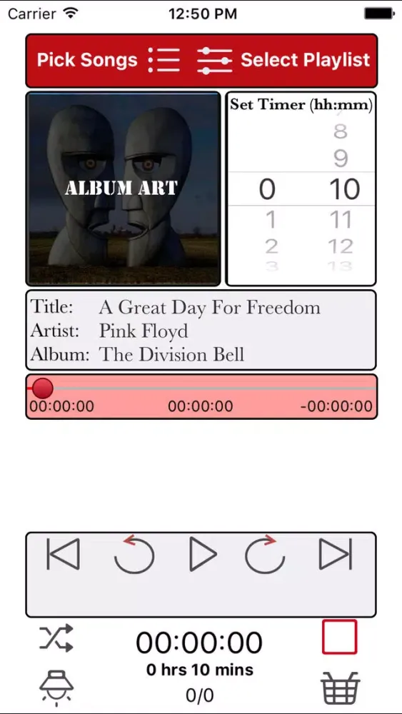 If you want your iPod music to play continuously for a set amount of time then this app is for you. You can pick individual songs from your iPod music library or pick an entire iPod playlist. The selected songs will loop for time duration set by you. The selected music playlist can be controlled using gestures when in night light mode.