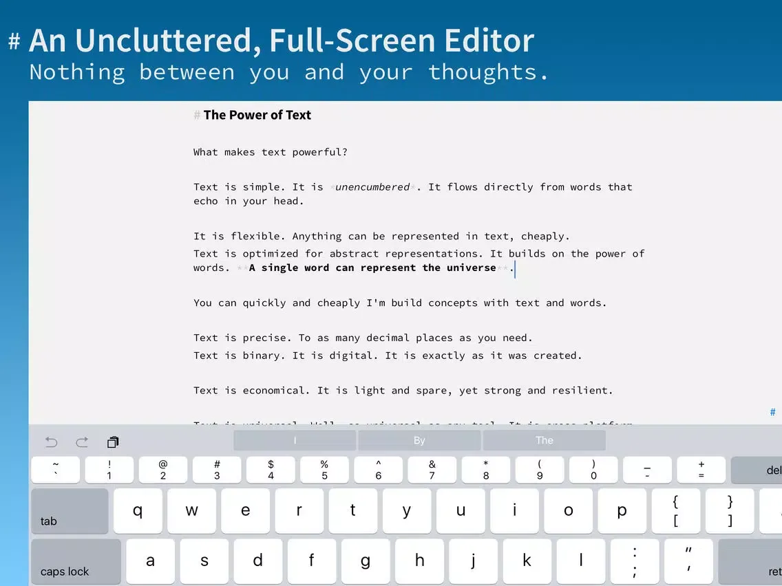 + First-Class Keyboard Support: Perform most tasks right from your hardware or bluetooth keyboard. Press the Cmd key to see the key list.