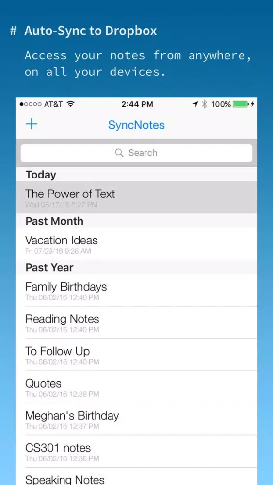 + Dropbox Sync: Automatically syncs across devices, and to your Mac or PC.
