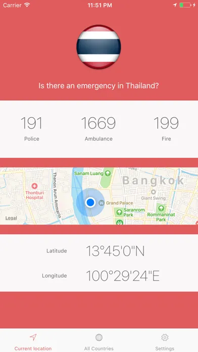 The main function of the app is the localization process that will check in which country you currently are and immediately shows the specific emergency phone numbers.