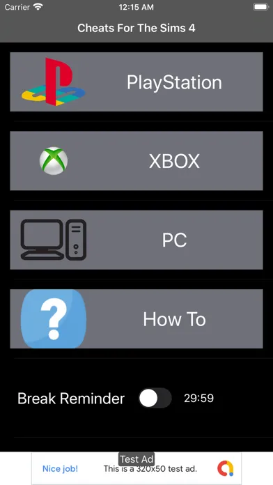 Using this app will make it easier for you to find the cheats for The Sims 4. The app also features a break reminder that will remind you to have a break every 30 minutes by using local notifications and a spoken prompt.The break reminder will also continue working in the background which means you will be reminded to have a break no matter what app you are using.