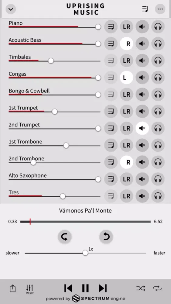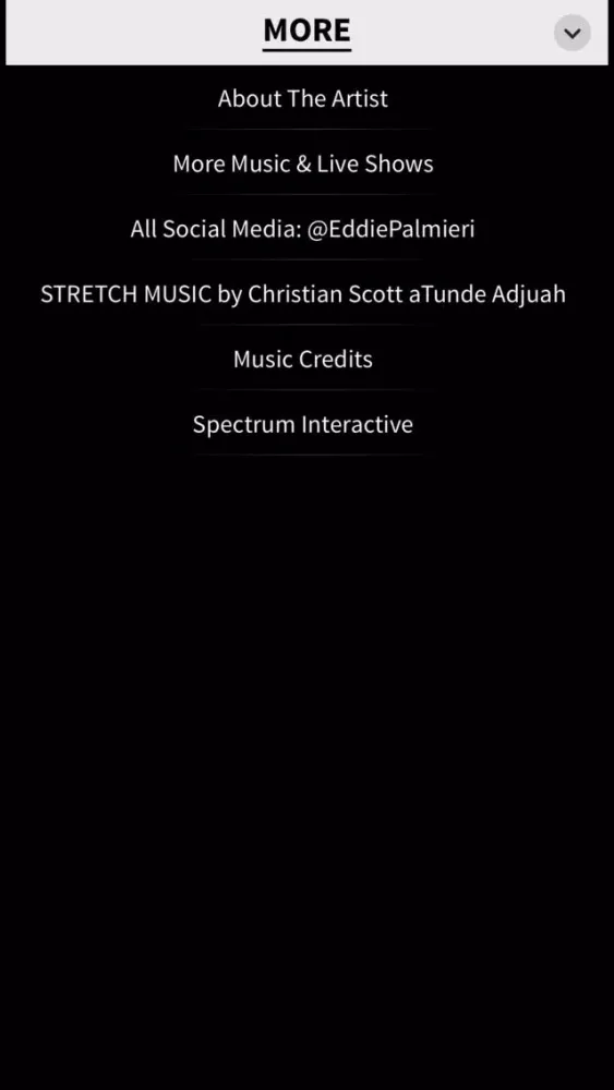 PalmieriSalsaJams App (powered by Stretch Music and Spectrum Interactive) is an interactive music player of Salsa King, Eddie Palmieri's Full Circle recording. PalmieiriSalsaJams is sure to please musicians and audiophiles alike. It gives musicians the ability to completely control their practicing, listening and learning experience by customizing the player to fit their specific needs and goals. The app has the capability to mute, solo, pan and fade any instrument chosen along with tempo control, looping and sheet music for each part. PalmieriSalsaJams delivers interactive audio and sheet music to create a compelling educational experience for efficient learning while simultaneously immersing developing musicians into a creative improvisation environment.